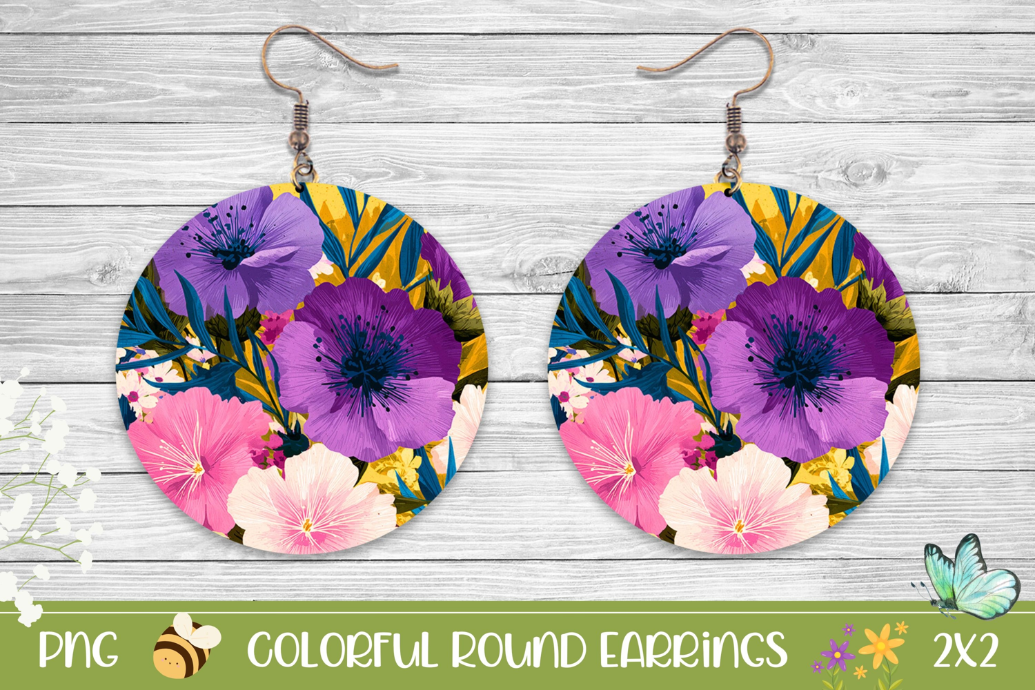 Similar Design Products to Purple Flowers Round Earrings PNG, Floral Earrings Design