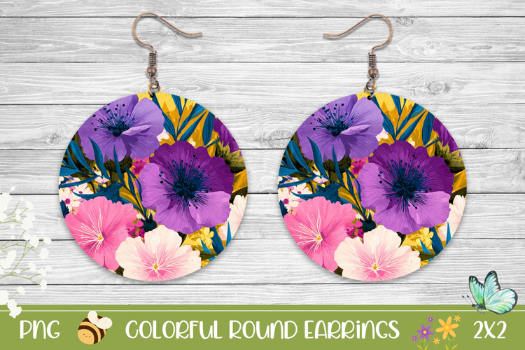 Summer Earrings Spring Earrings Earrings Sublimation Printable Earrings Floral Earrings Design Flowers Round Earrings Floral Round Earrings Flowers Earrings Png Jewerly Sublimation Creative Round Earrings