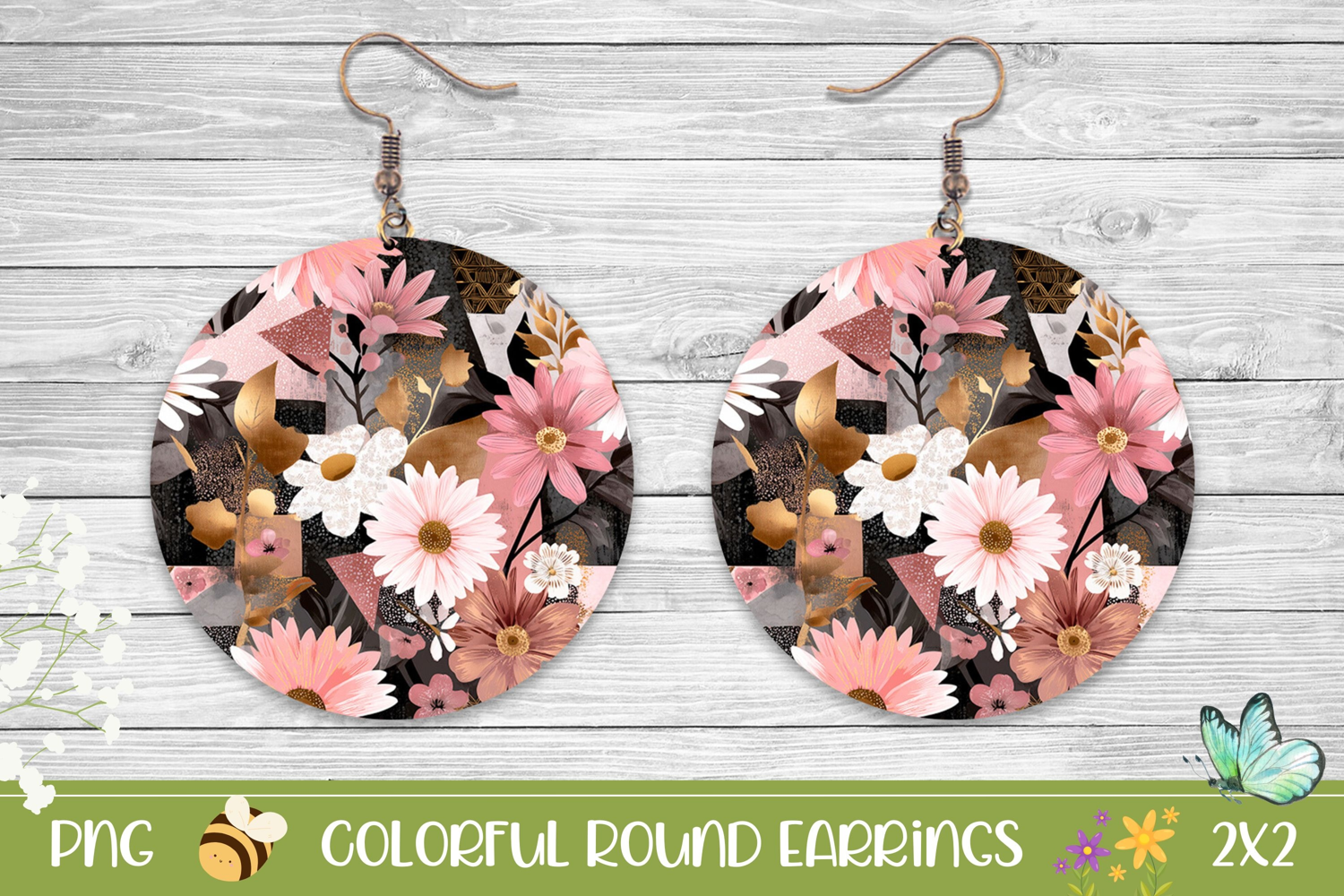 Summer Earrings Spring Earrings Earrings Sublimation Printable Earrings Floral Earrings Design Flowers Round Earrings Floral Round Earrings Flowers Earrings Png Jewerly Sublimation Creative Round Earrings