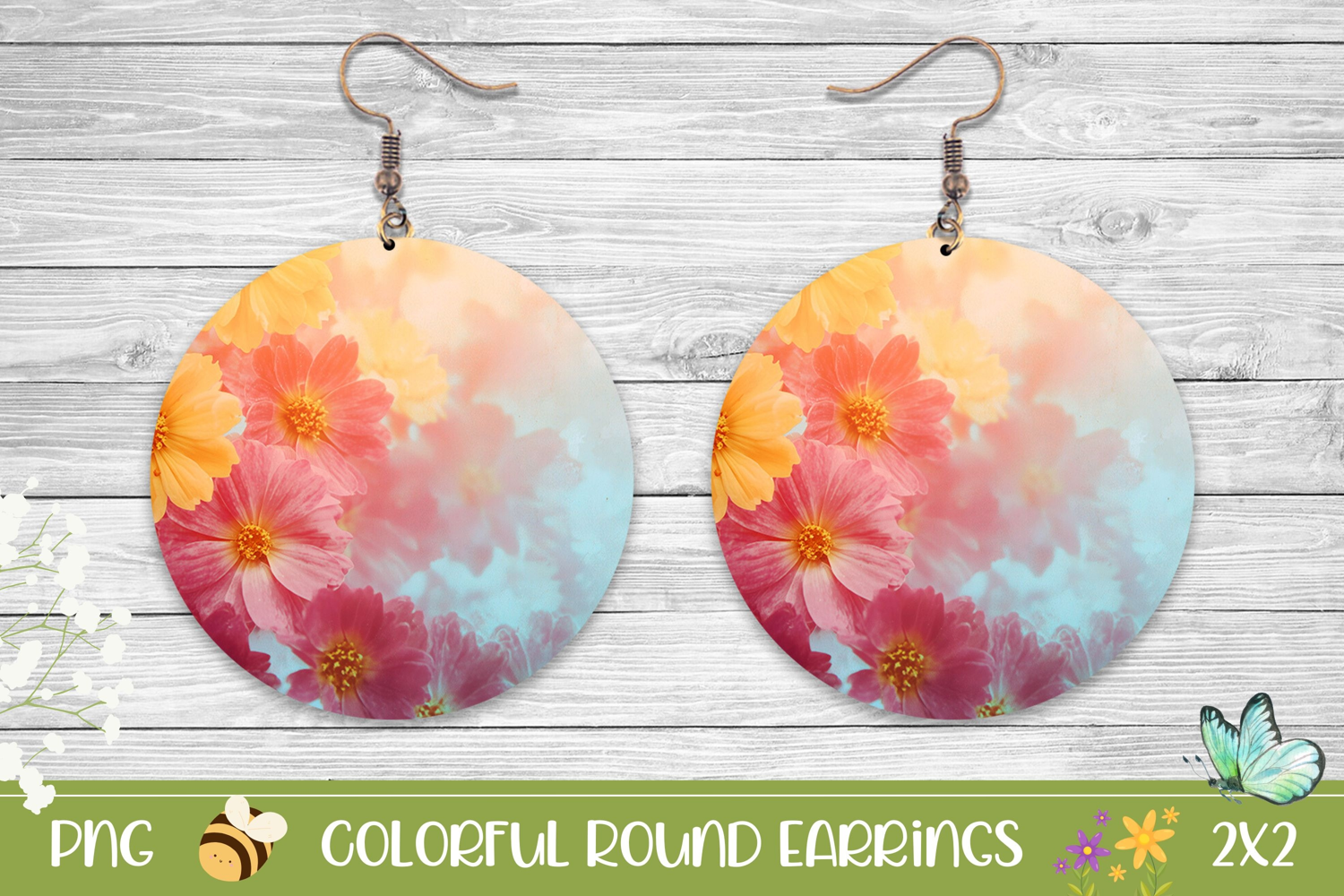Summer Earrings Spring Earrings Earrings Sublimation Printable Earrings Floral Earrings Design Flowers Round Earrings Floral Round Earrings Flowers Earrings Png Jewerly Sublimation Creative Round Earrings