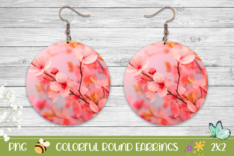 Floral Earrings Design, Sakura Round Earrings Sublimation