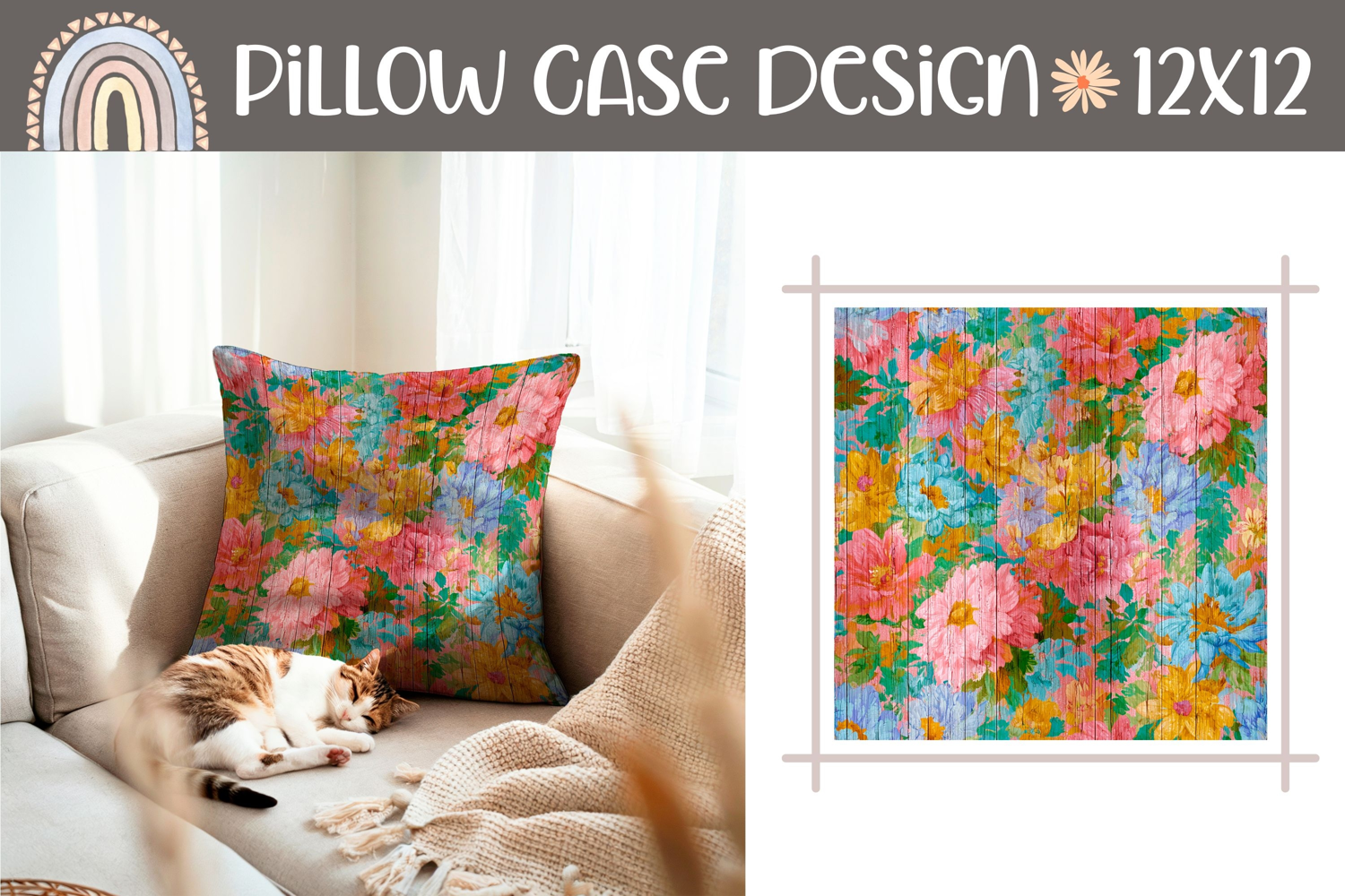 Pillow Case Template, Flowers Pillow Sublimation PNG