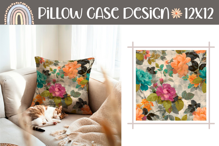Flowers Digital Paper Home Decor Floral Print Flowers Png Floral Pillow Design Vintage Pillow Sublimation Floral Pillowcase Summer Pillow Cover Nature Pillow Print Spring Pillow Case