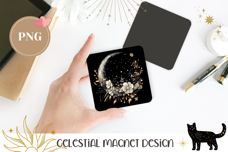 Similar Design Products to Moon Magnet, Celestial Magnet PNG, Floral Magnet