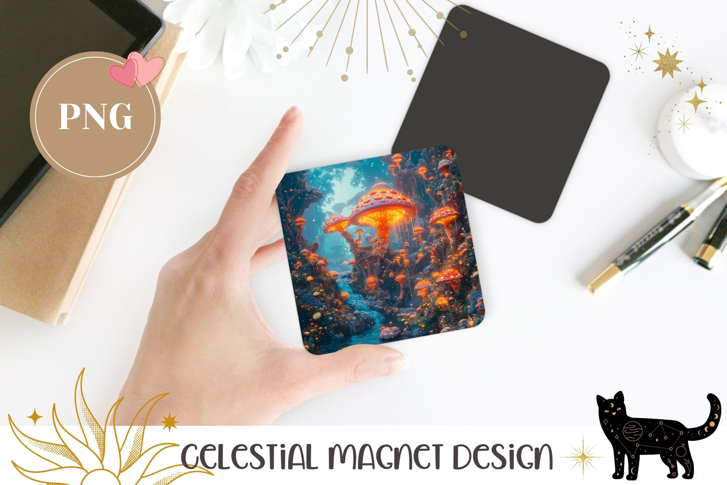 Mushrooms Magnet Template, Celestial Magnet, Forest Magnet