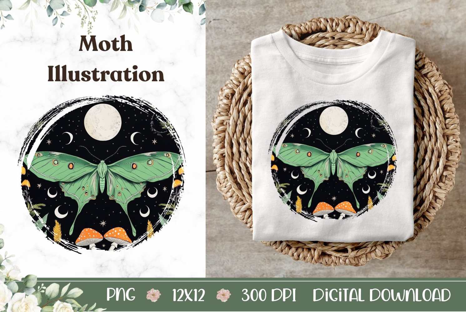 Celestial Moth Illustration PNG, Night Forest Illustration example image 1