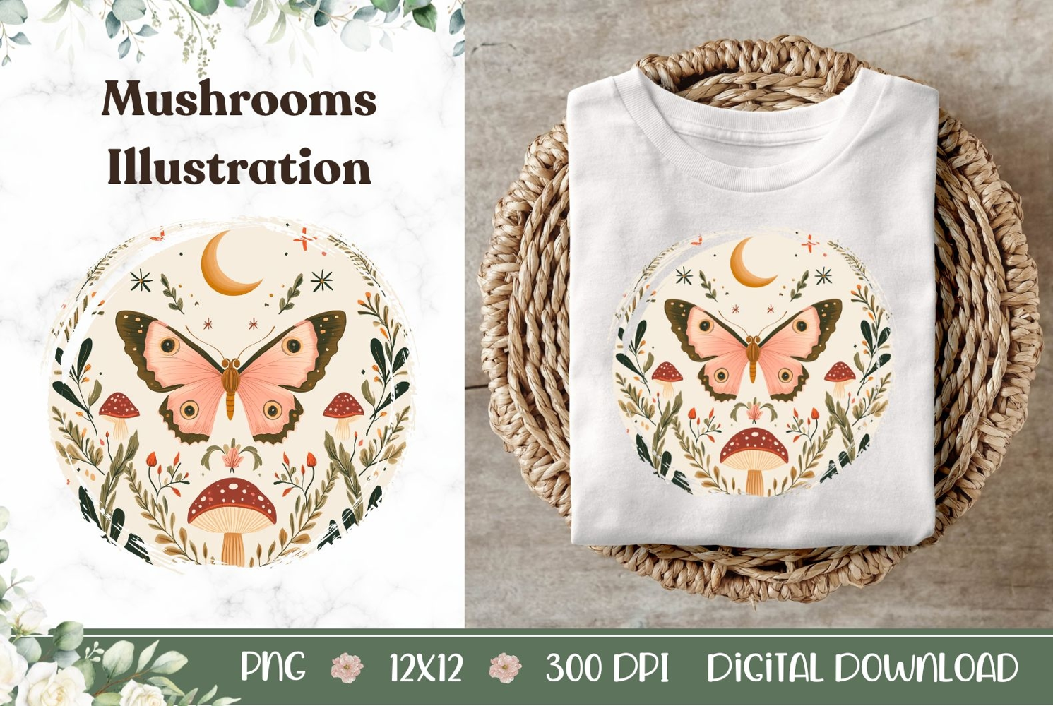 Floral Illustration Forest Illustration Mushrooms Png Celestial Illustration Mushrooms Illustration Moth Illustration Celestial Png Celestial Moon Png Celestial Sublimation Design Cartoon Moth Png