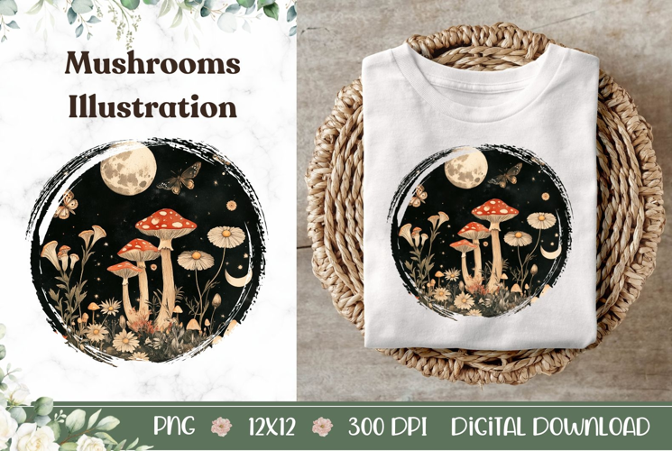 Celestial Mushrooms Illustration, Boho Night Forest PNG example image 1