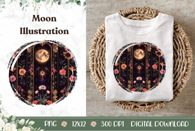 Celestial Moon Illustration PNG, Boho Flowers Illustration example image 1