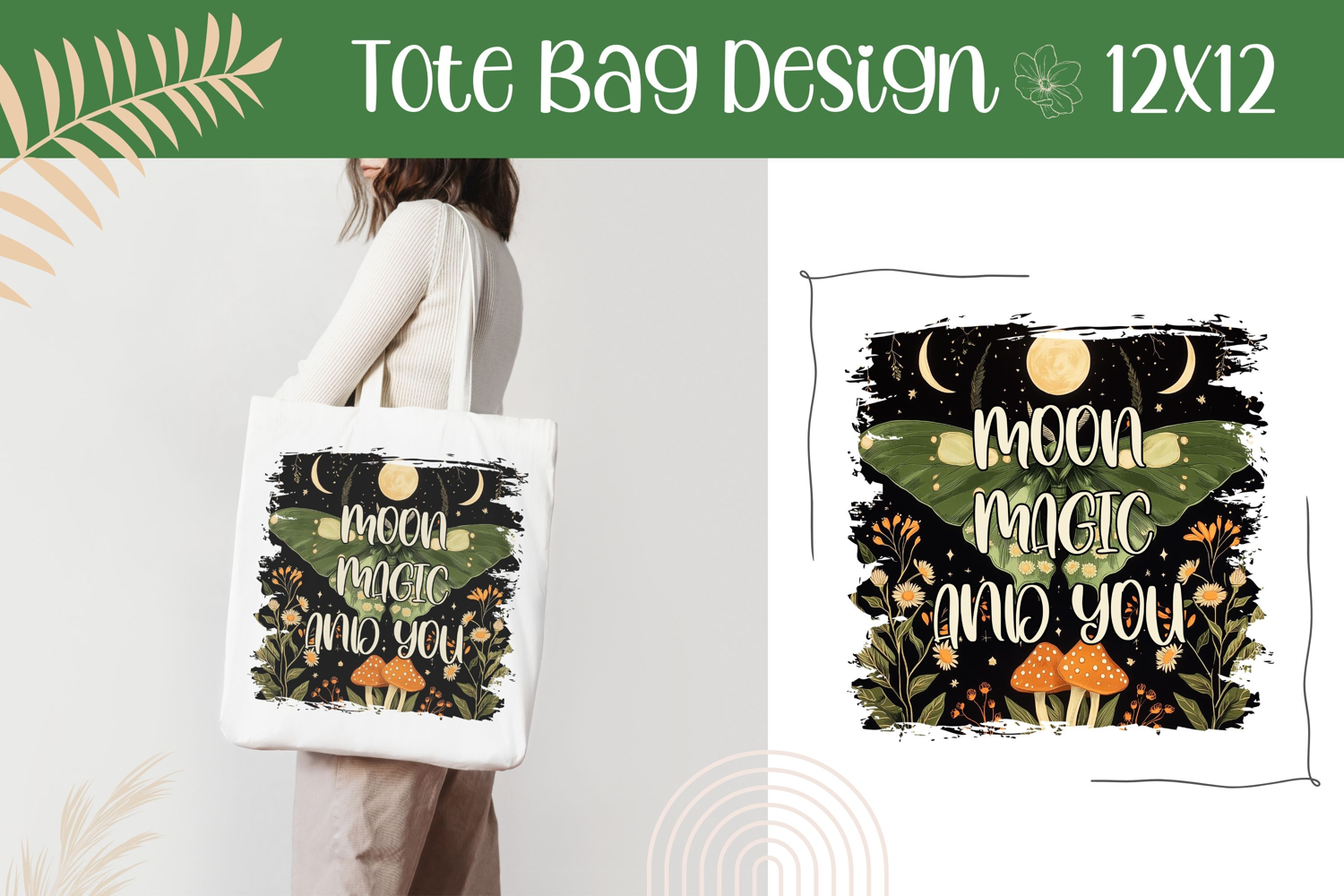 Similar Design Products to Mushrooms PNG, Moon Magic and You PNG, Green Moth PNG