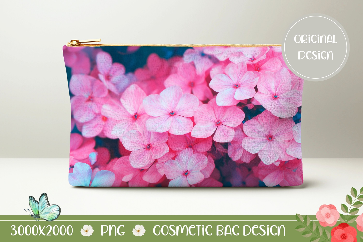 Pink Hydrangea Cosmetic Bag, Pink Cosmetic Bag Template
