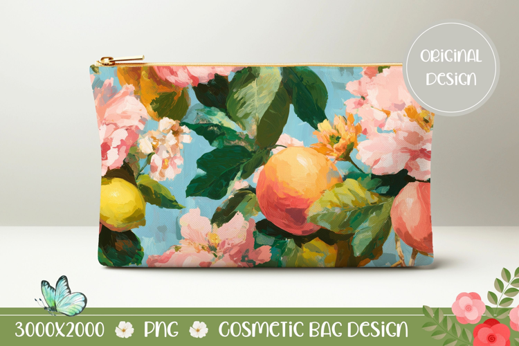 Flowers Art Cosmetic Bag PNG, Floral Cosmetic Bag Design example image 1