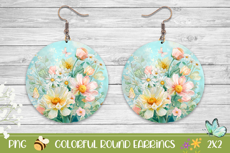 Summer Earrings Spring Earrings Earrings Sublimation Printable Earrings Floral Earrings Design Flowers Round Earrings Floral Round Earrings Flowers Earrings Png Jewerly Sublimation Creative Round Earrings