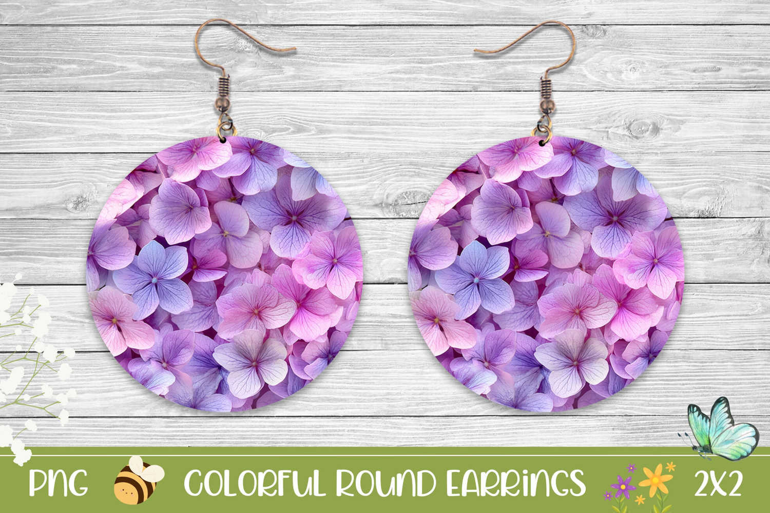 Similar Design Products to Flowers Earrings Design, Purple Hydrangea Round Earrings