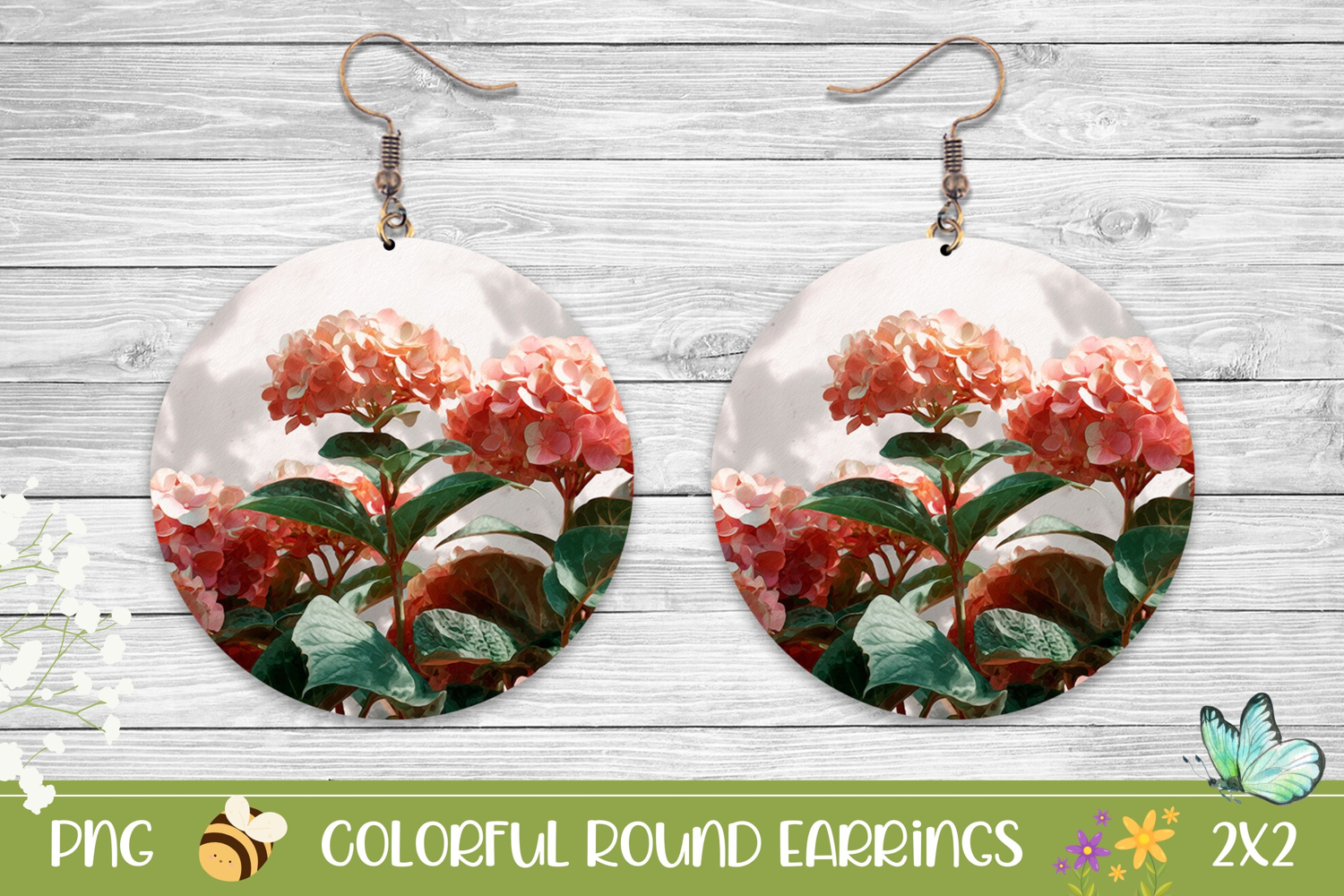 Watercolor Hydrangea Earrings Sublimation PNG example image 1
