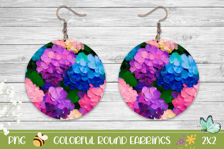 Colorful Hydrangea Round Earrings Sublimation PNG example image 1