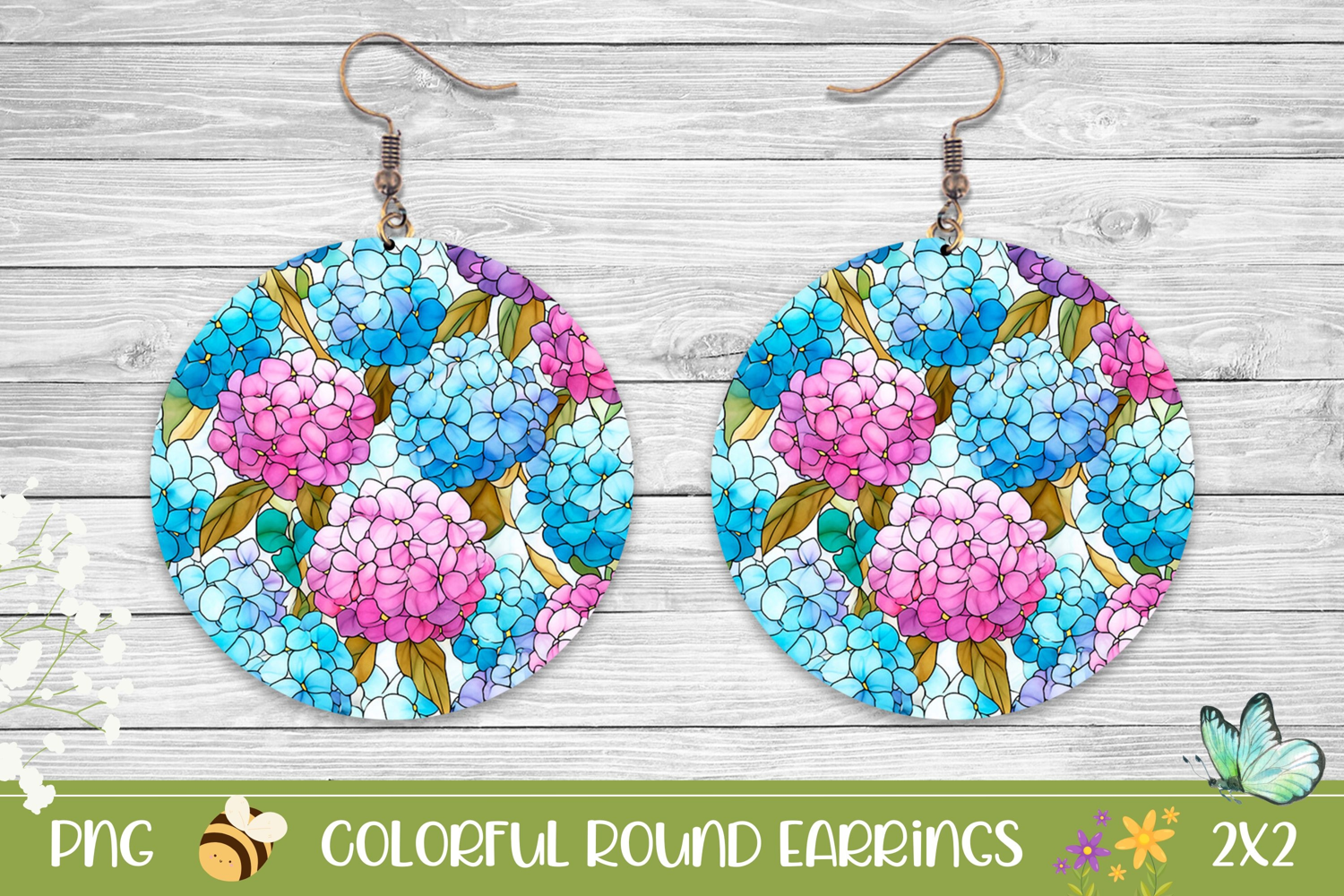 Similar Design Products to Stained Glass Hydrangea Round Earrings Sublimation PNG
