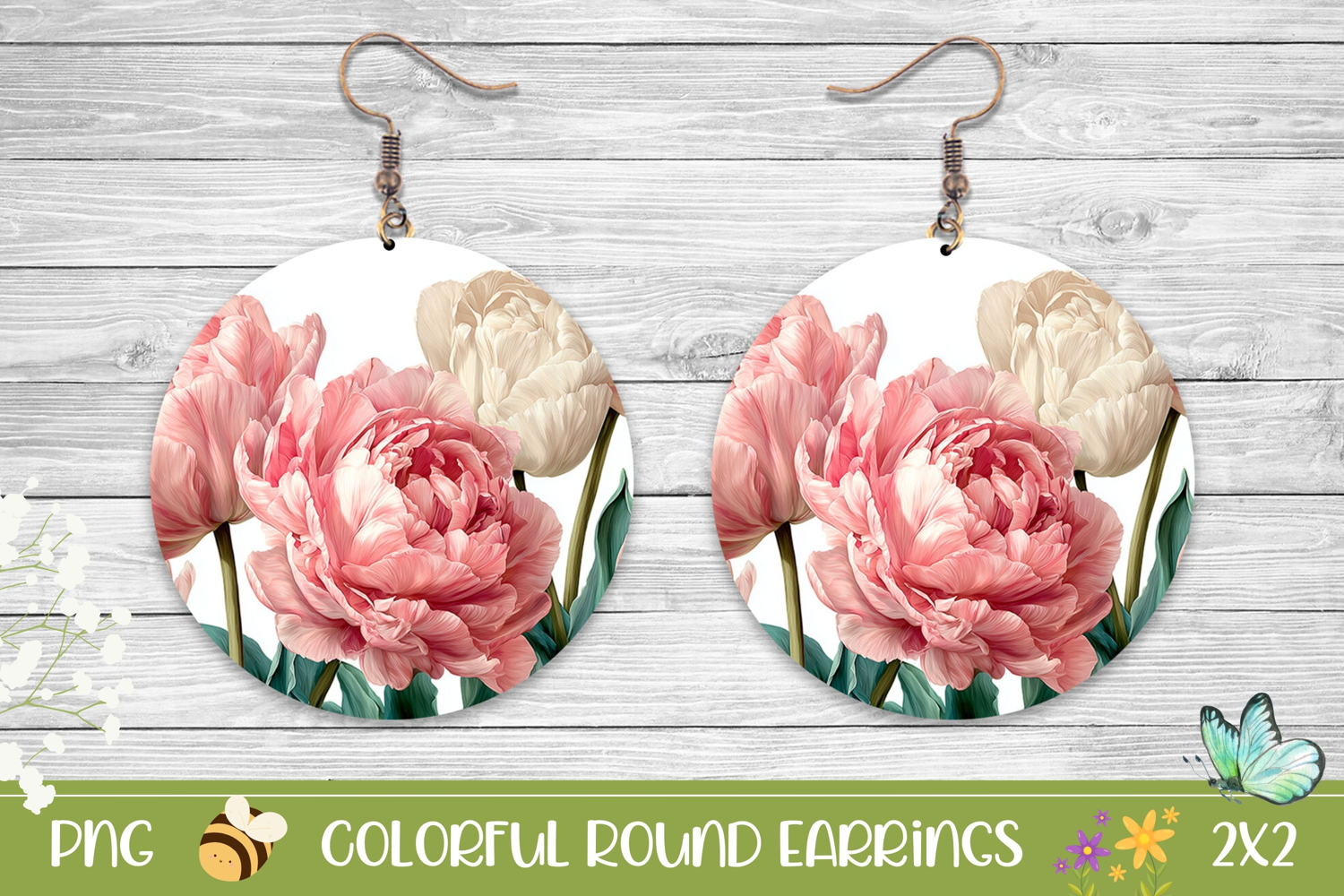 Similar Design Products to Pink Peony Round Earrings, Flowers Earrings PNG