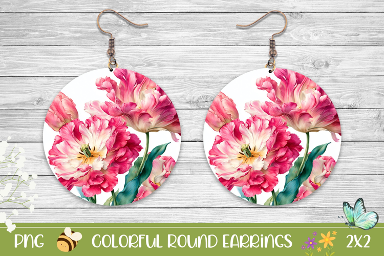 Summer Earrings Spring Earrings Earrings Sublimation Printable Earrings Floral Earrings Design Flowers Round Earrings Floral Round Earrings Flowers Earrings Png Jewerly Sublimation Creative Round Earrings