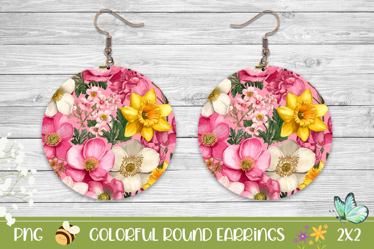 Summer Earrings Spring Earrings Earrings Sublimation Printable Earrings Floral Earrings Design Flowers Round Earrings Floral Round Earrings Flowers Earrings Png Jewerly Sublimation Creative Round Earrings