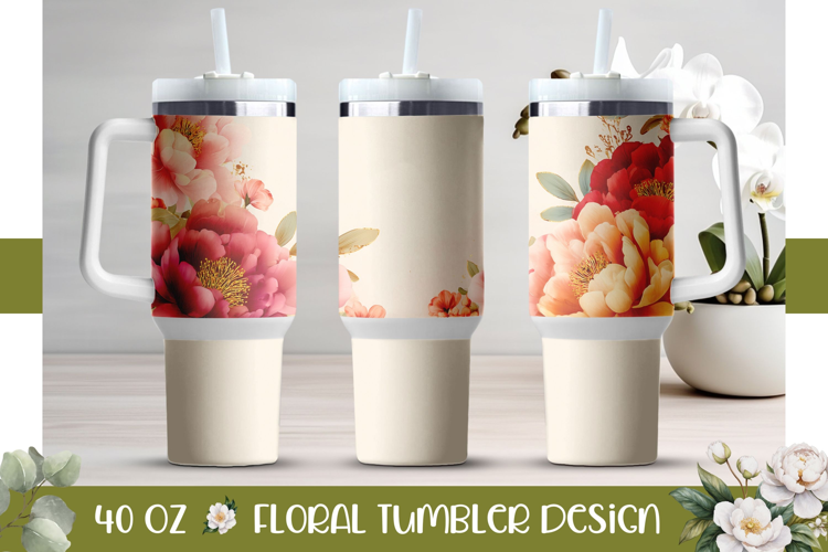 Peony Tumbler Wrap Design, Floral 40 Oz Tumbler PNG example image 1