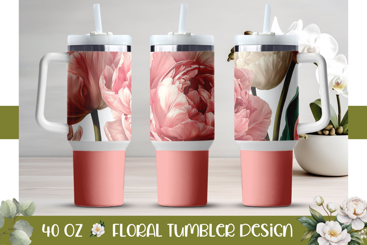 Pink Peony Tumbler, Pink 40 Oz Tumbler Template example image 1