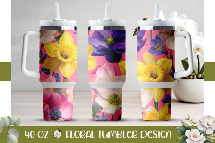 Narcissus Tumbler Design, Pink 40 Oz Tumbler Template example image 1