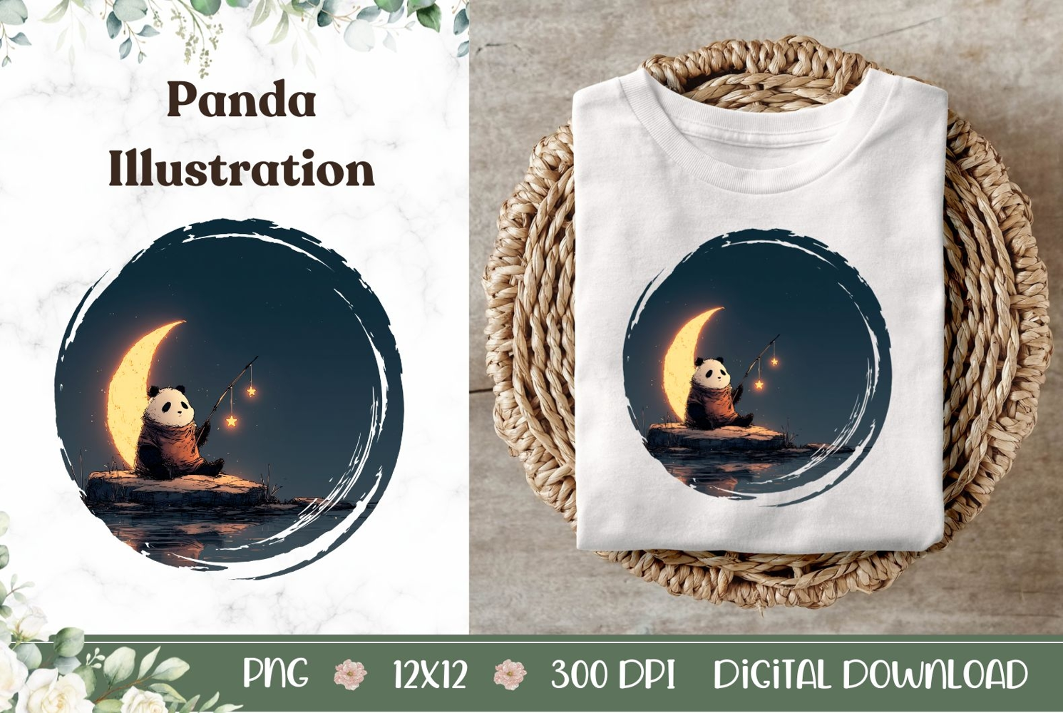 Similar Design Products to Cartoon Panda Illustration, Panda PNG, Moon PNG