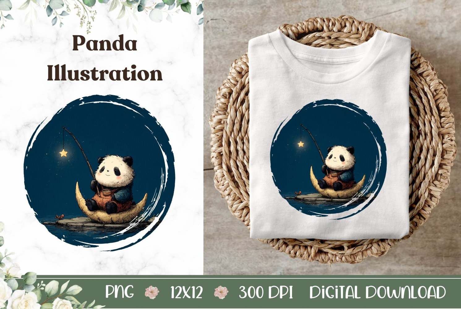 Kids Illustration Panda Illustration Cute Animals Png Animals Sublimation Panda Sublimation Design Panda T Shirt Cartoon Animals Illustration Panda Tote Bag Cartoon Panda Png Moon T Shirt
