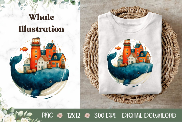 Similar Design Products to Cartoon Whale Illustration, Cartoon Town PNG, Whale PNG