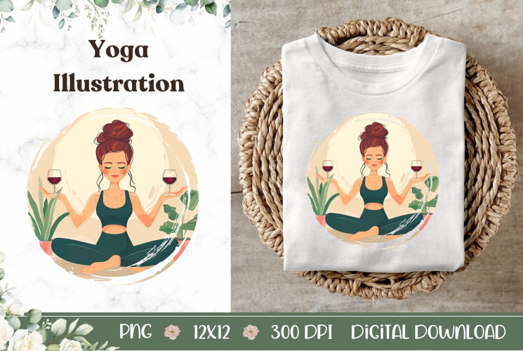 Cartoon Yoga Illustration PNG, Wine Yoga Sublimation Design example image 1