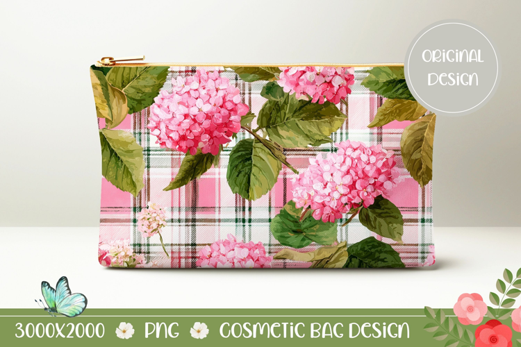 Pink Hydrangea Cosmetic Bag Design, Floral Cosmetic Bag
