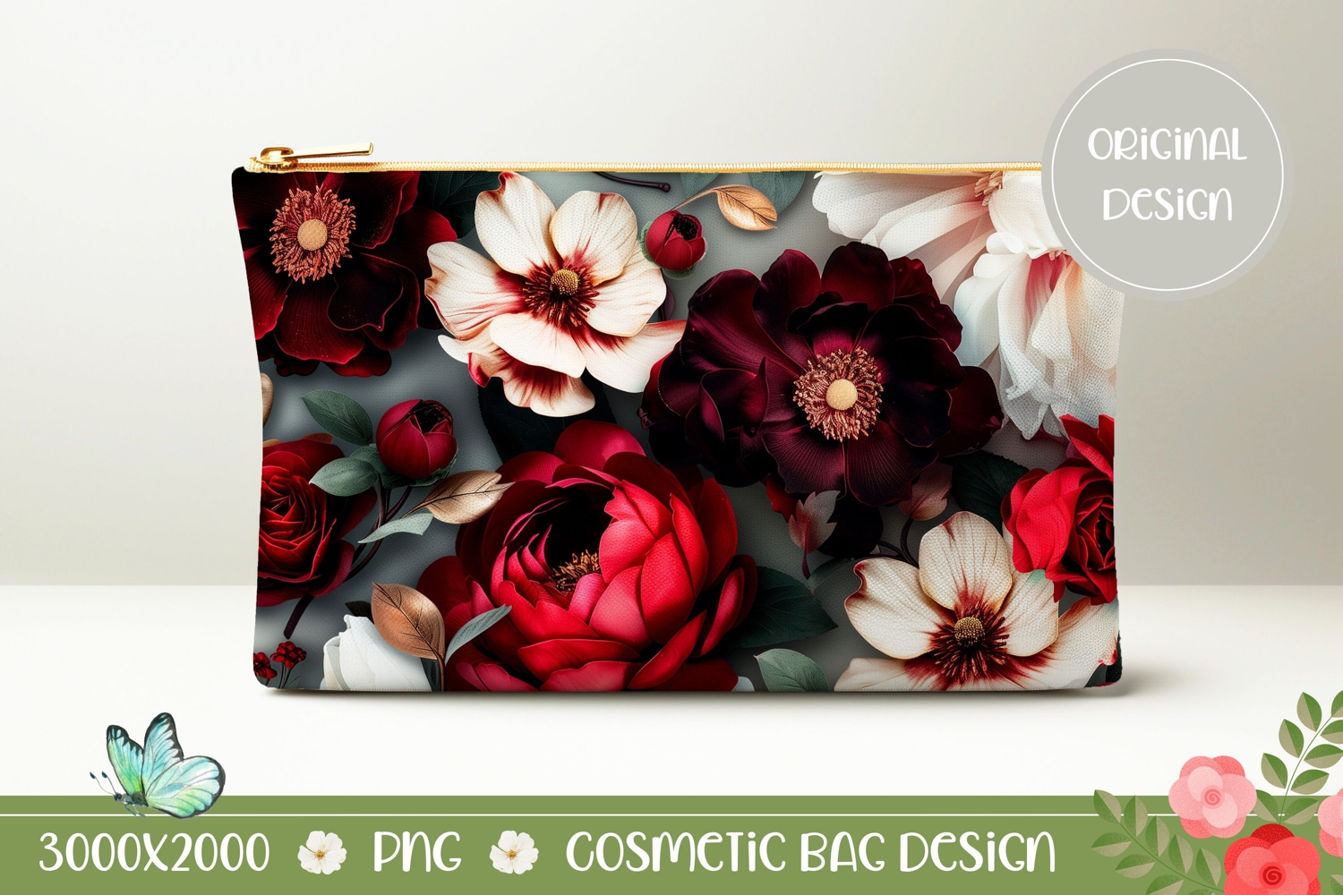 Similar Design Products to Red Flowers Cosmetic Bag PNG, Floral Cosmetic Bag Design