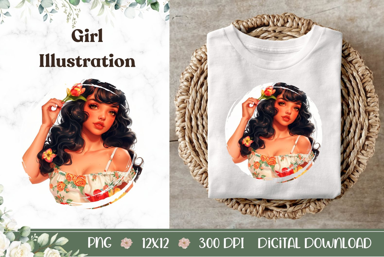 Similar Design Products to Pin Up Girl Illustration, Cartoon Girl Print, Flowers PNG
