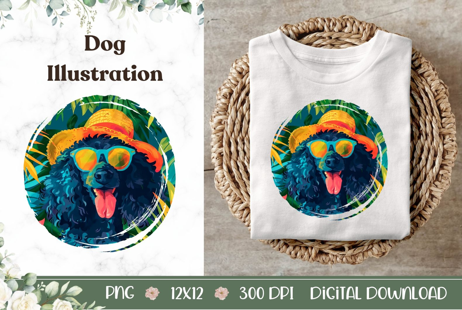 Similar Design Products to Summer Black Poodle Illustration, Tropical Poodle Dog PNG