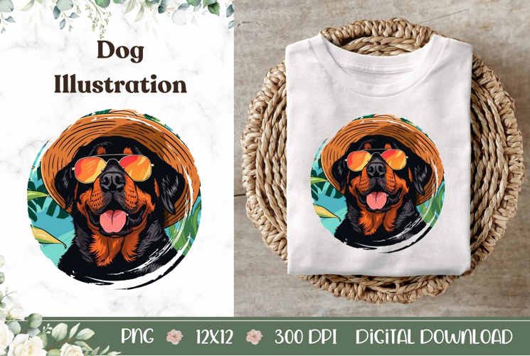 Summer Rottweiler Dog llustration, Cute Rottweiler Dog PNG example image 1