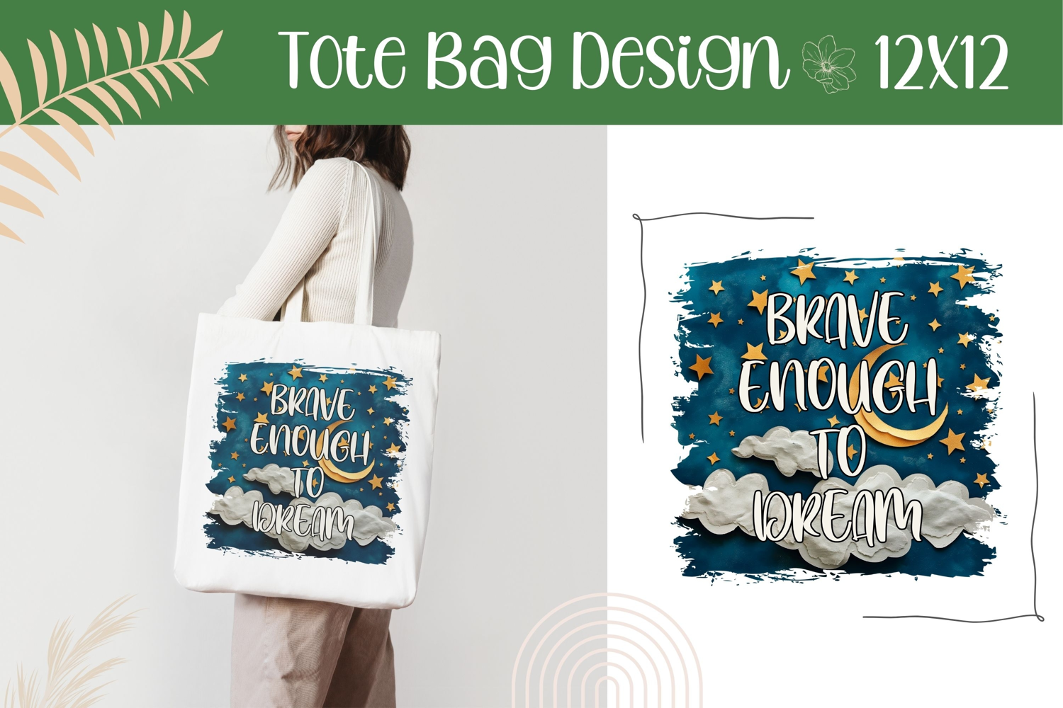 Celestial Moon Illustration, Brave Enough To Dream PNG example image 1