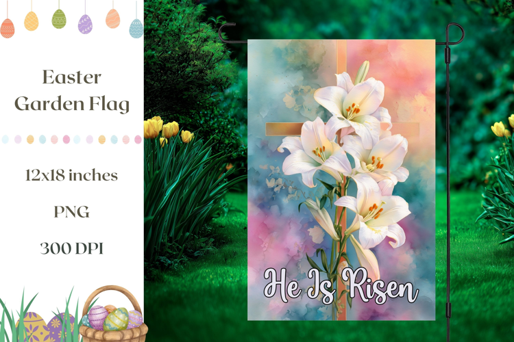 He Is Risen Garden Flag Template, Christian Cross PNG example image 1