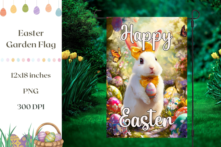 Similar Design Products to Happy Easter Garden Flag Template, Cartoon Easter Bunny PNG
