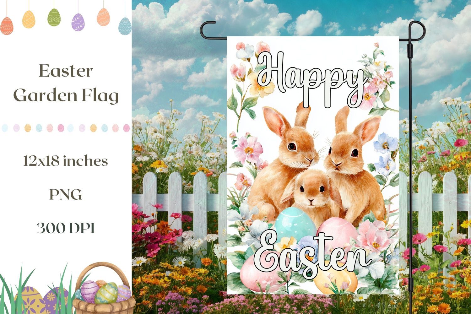 Floral Easter Garden Flag, Easter Bunny Sublimation Design example image 1