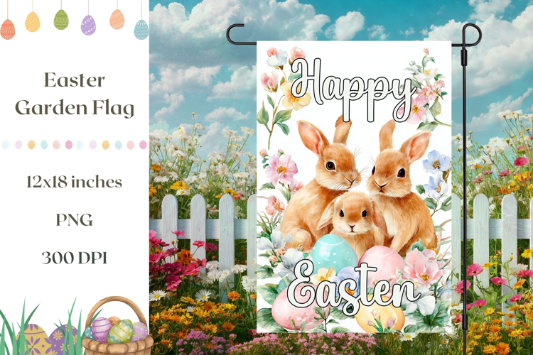 Floral Easter Garden Flag, Easter Bunny Sublimation Design
