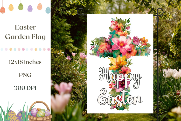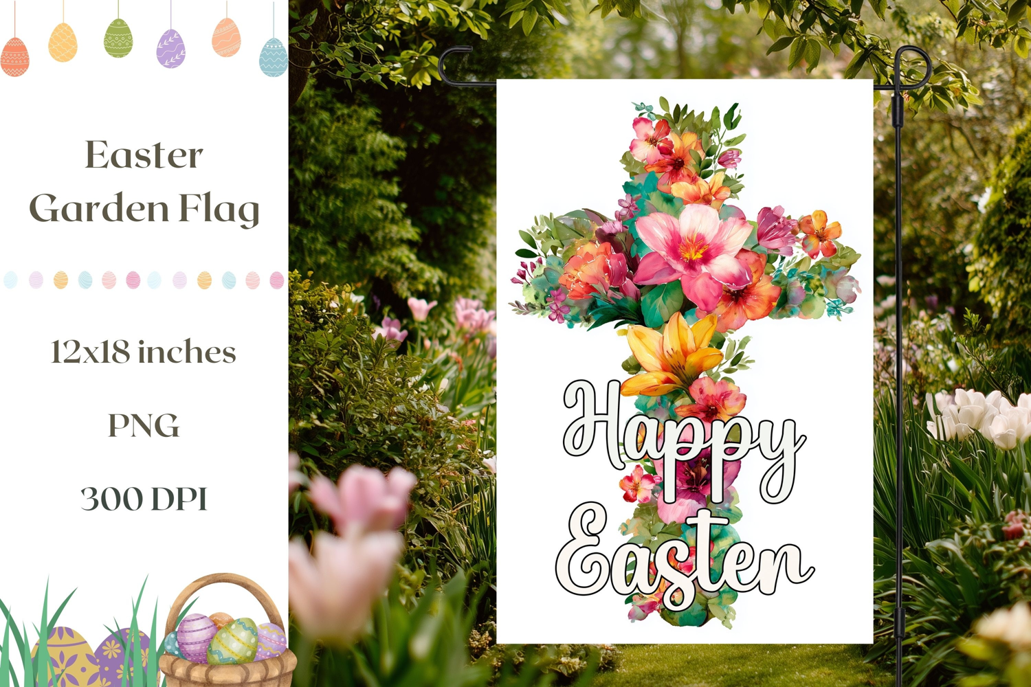 Happy Easter He Is Risen Png Easter Sublimation Design Spring Garden Flag Easter Garden Flag Christian Cross Png Floral Cross Sublimation Welcome Garden Flag Christian Garden Flag Religious Sublimation Easter