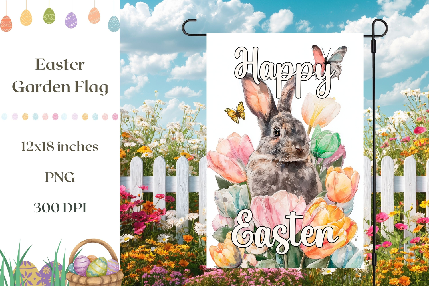 Happy Easter Easter Eggs Png Easter Sublimation Design Spring Garden Flag Easter Garden Flag Cartoon Bunny Sublimation Welcome Garden Flag Easter Bunny Garden Flag Christian Bunny Png Flowers Sublimation Easter