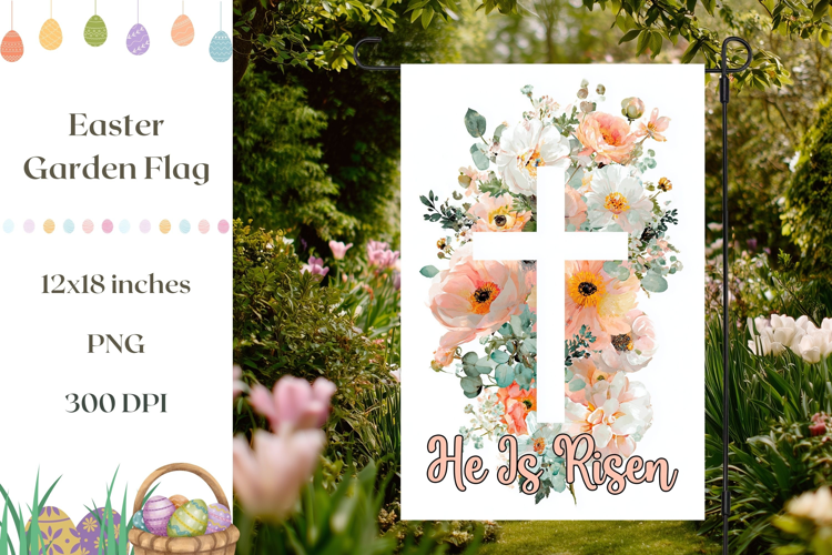 Happy Easter He Is Risen Png Easter Sublimation Design Spring Garden Flag Easter Garden Flag Christian Cross Png Floral Cross Sublimation Welcome Garden Flag Christian Garden Flag Religious Sublimation Easter