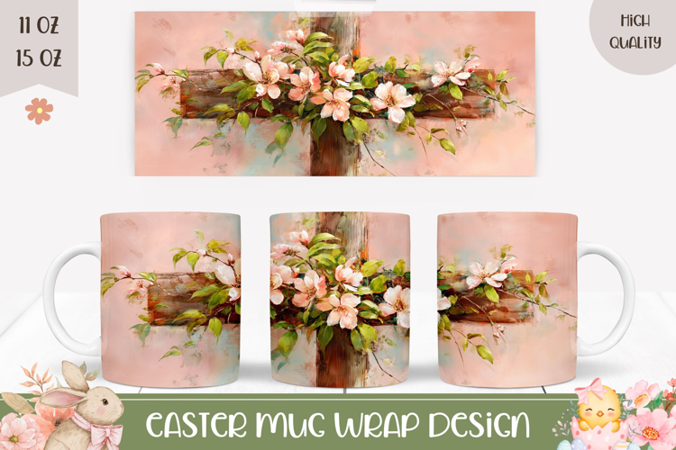Easter Cross Sublimation Cross Floral Christian Cross Sublimation Floral Christian Cross Easter Mug Template Christian Sublimation Mug Religious Mug Wrap Christian Mug Wrap Design Christian Cross Mug Wrap Easter Coffee Mug Png