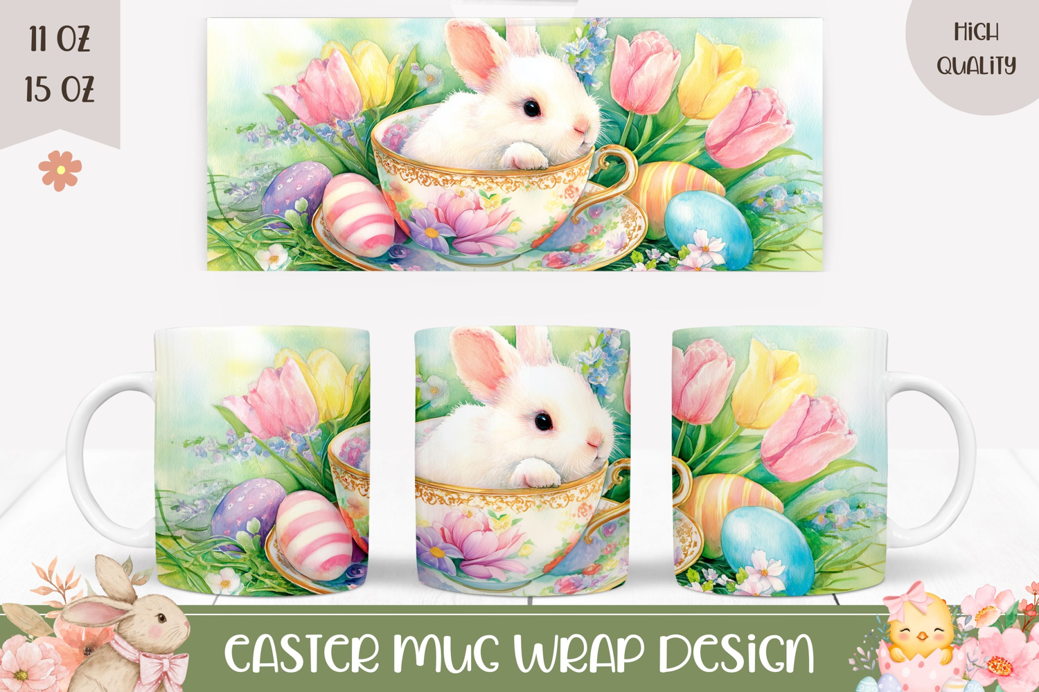 Similar Design Products to Watercolor Easter Bunny Mug Design, Cartoon Easter Mug Wrap