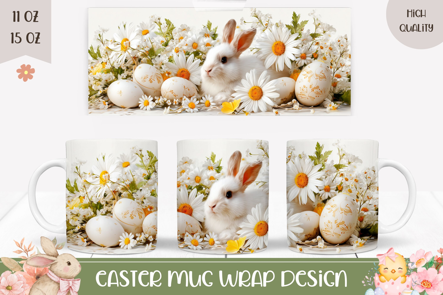 Easter Eggs Easter Sublimation Design Spring Sublimation Design Easter Mug Sublimation White Rabbit Mug Design Easter Bunny Mug Wrap Design Spring Mug Png Easter Coffee Mug Wrap Flowers Mug Template Cute Bunny Mug Design