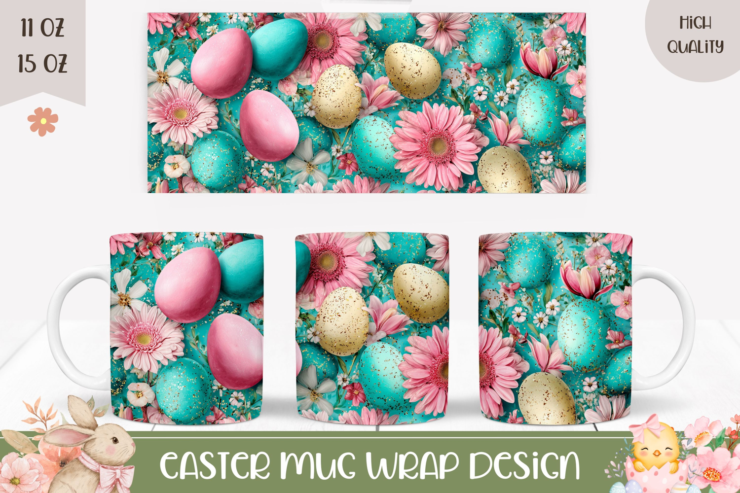 Glitter Easter Eggs Mug Design, Floral Mug Template example image 1