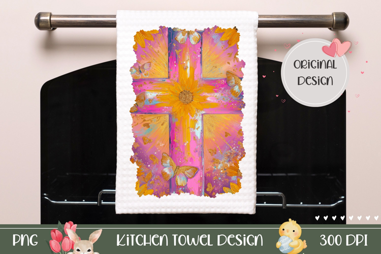Pink Easter Cross Towel PNG, Christian Towel Design example image 1