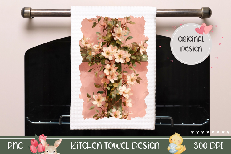 Pink Easter Cross Towel PNG, Christian Towel Template example image 1